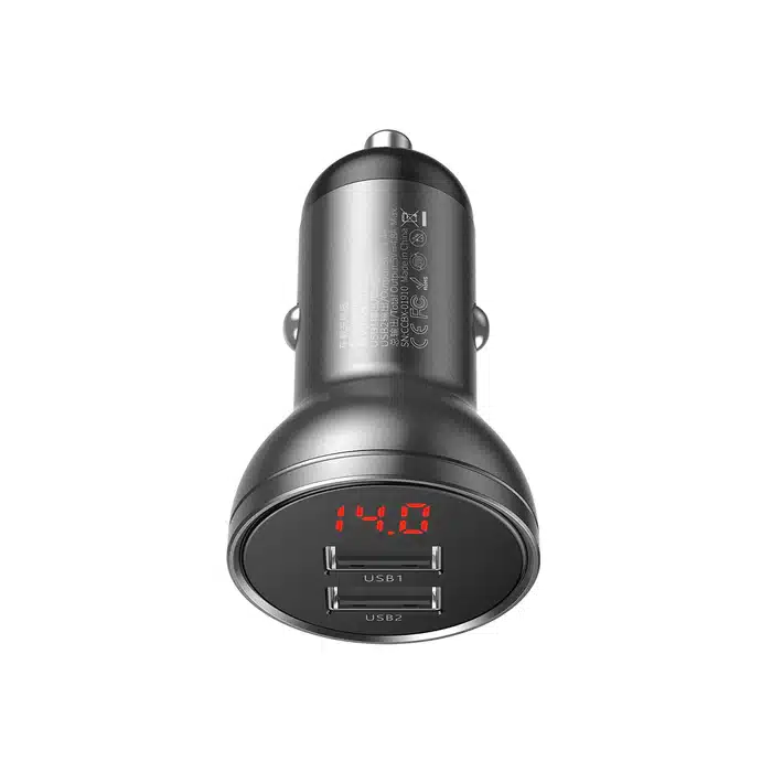 Baseus Digital Display Dual USB 4.8A Car Charger 24W Grey CCBX-OG