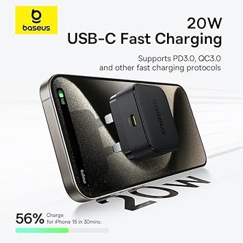 1 * Baseus Palm 20W PD Type-C Fast Charging Wall Charger, 1* Ultra-Fast Fast Charging Data Cable 1M