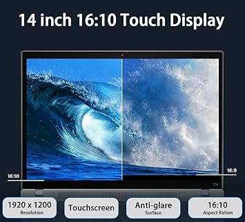 • DISPLAY AND GRAPHICS – 14″ WUXGA (1920 x 1200) IPS, 300nits Anti-glare, 16:10, 45% NTSC, Touch Display; Integrated Intel Xe Graphics