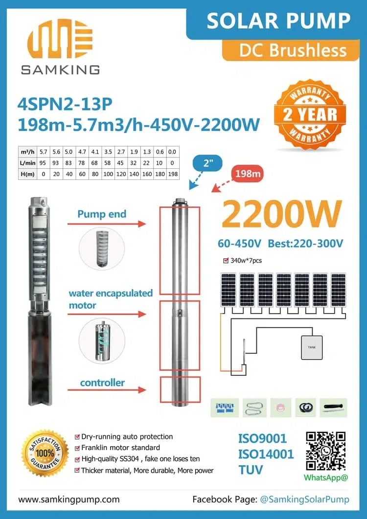 Samking 2hp 190m 5.7m3/h-450V-2200W DC Brushless Only 4SPN2-13P
